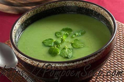 - Serveer de waterkerssoep in kommen en garneer met wat extra waterkersblaadjes en een scheutje room of crème fraîche.